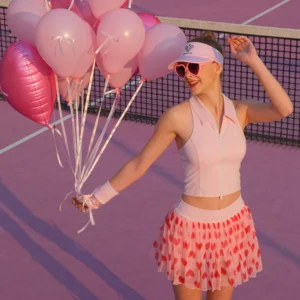 - Sporty-chic: Kalila + chân váy Pickleball Reese + sneaker trắng